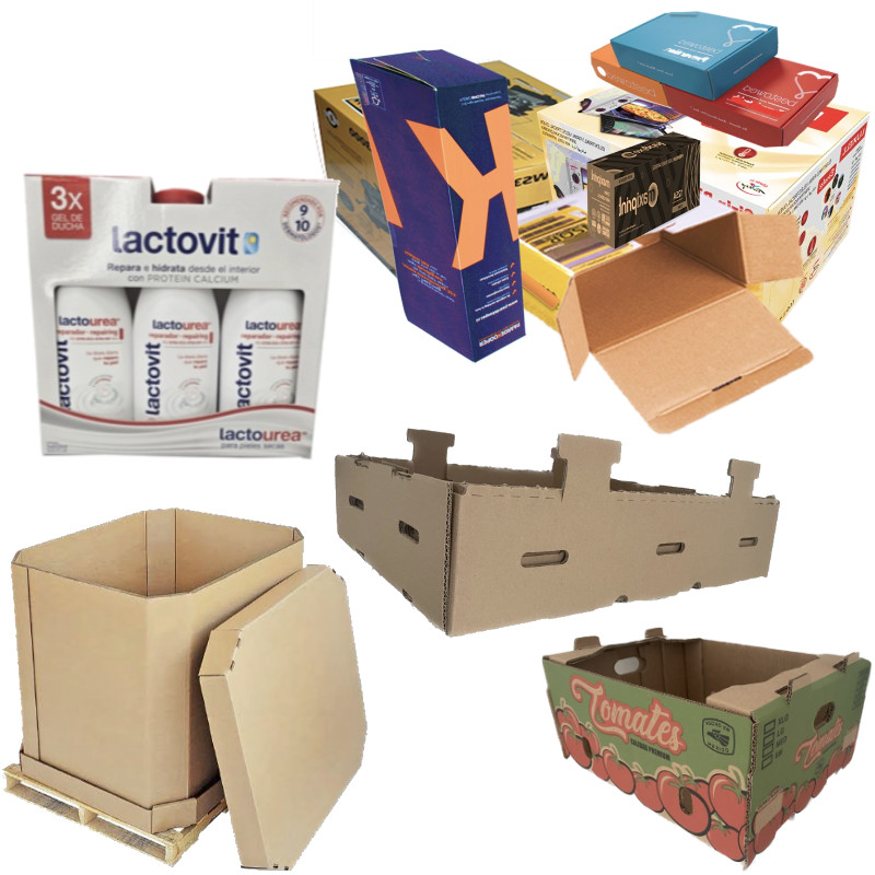 Cajillas de plegadizo offset en caple y cartulina sulfatada, Corrugado Kraft/Blanco y Flautas C,B,E,BE Y BC