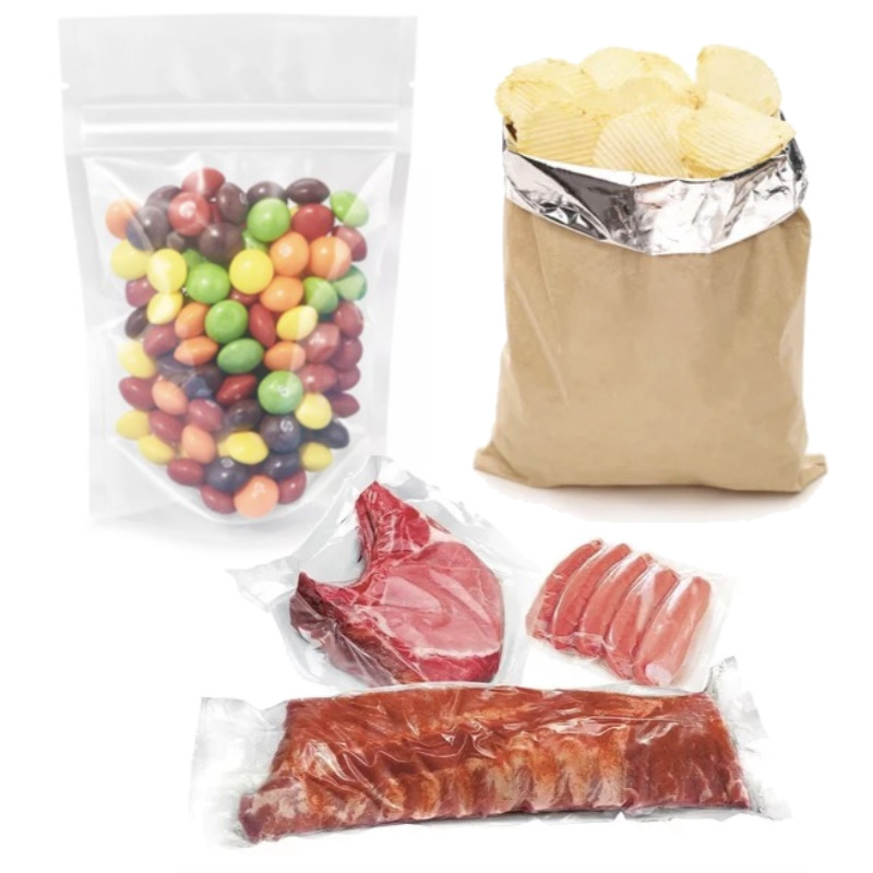 Polietileno, Polipropileno, PET, PVC, Foil de aluminio, BOPP,Papel antigrasa, Bolsas de alto vacío y Películas de congelación.